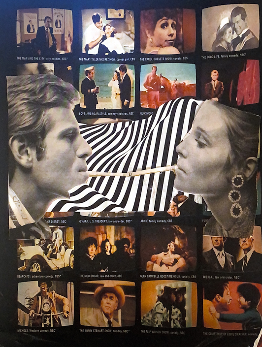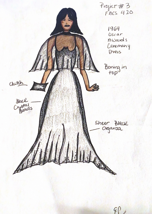 this project was inspired by a 1960s collage I made featuring magazine cutouts highlighting the new innovations in television and the boom in Hollywood during this era. the garment design represents my vision of what an actress would wear to an academy awards ceremony in the early 1960s.