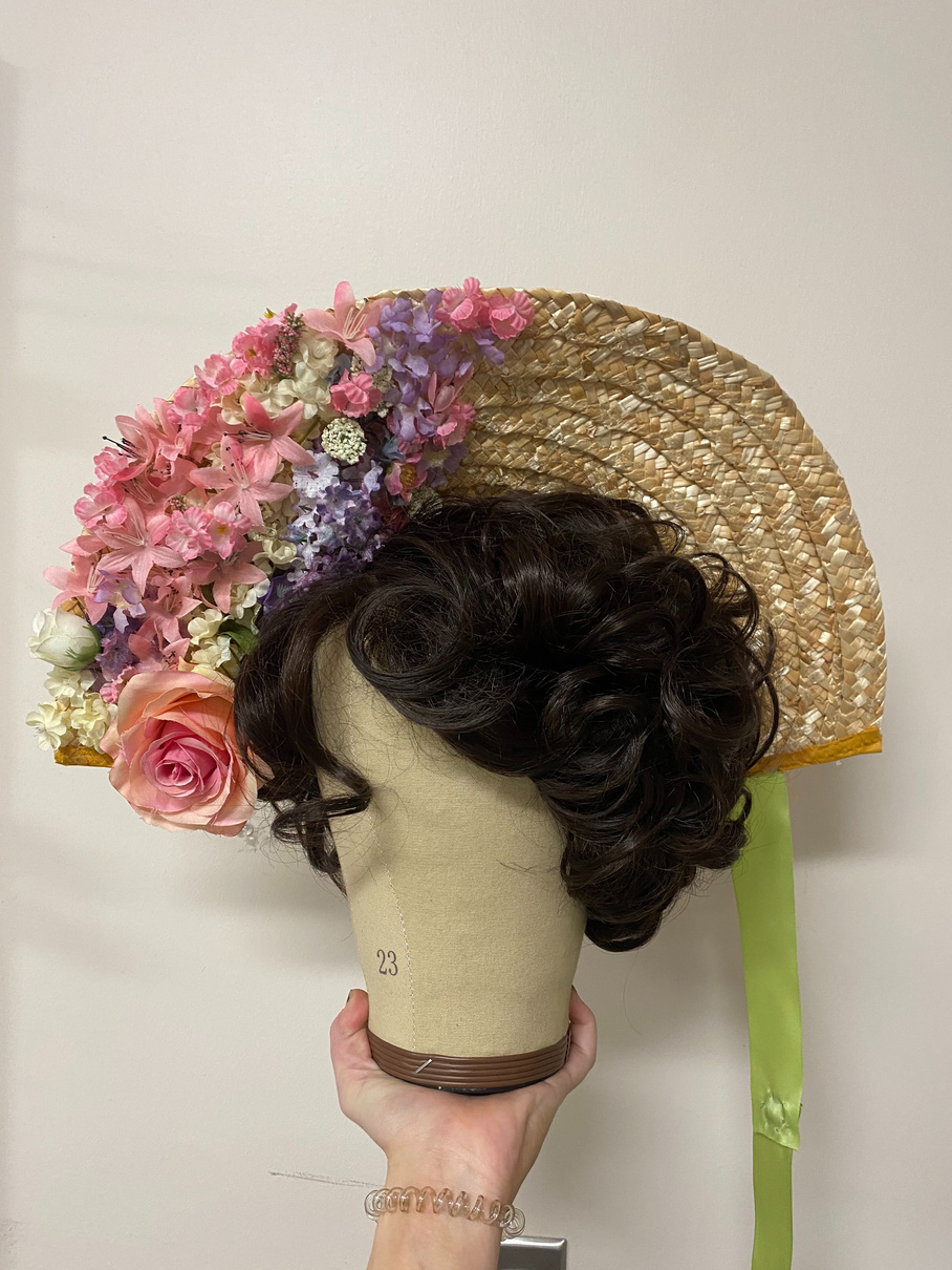 hat for 42nd street performance, featuring hand-sewn flowers and ribbon