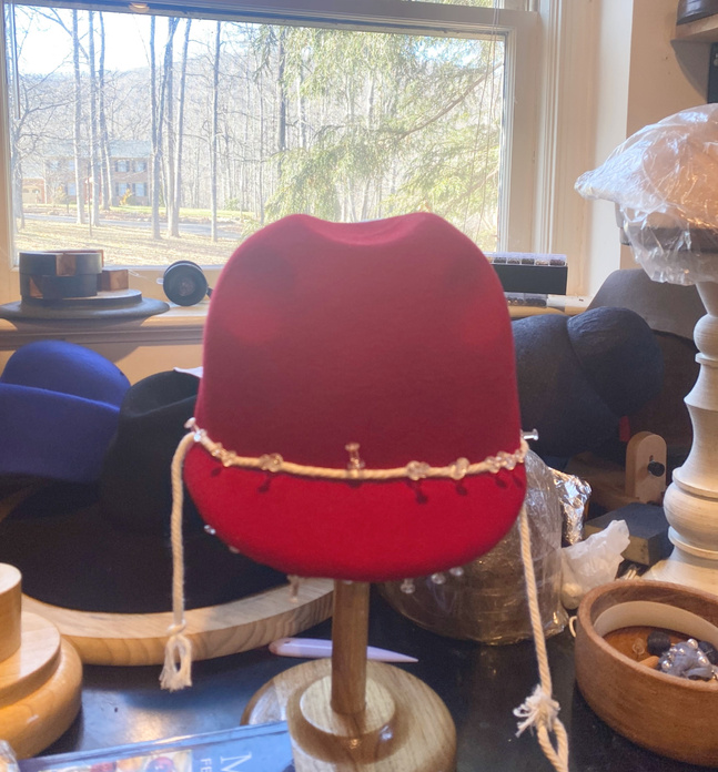 A riding hat that i hand-blocked in my time as a milliner's apprentice